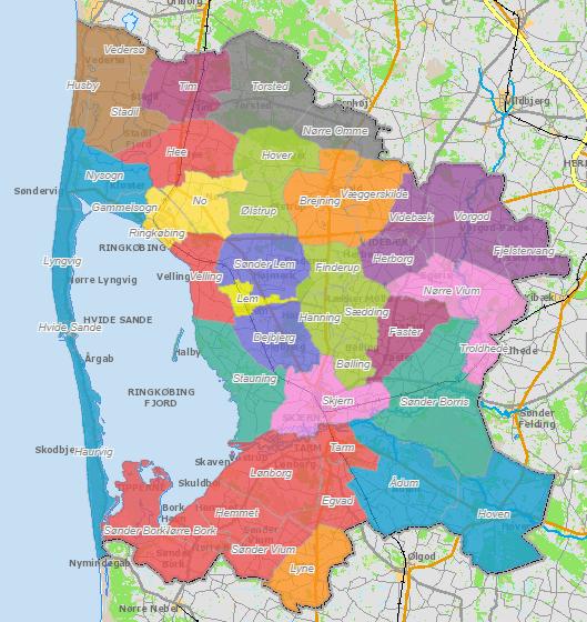 På kortet nedenunder kan du se de forskellige sogne og lokalarkivers afgrænsning.